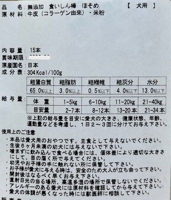 原材料  ︓ 牛皮(コラーゲン由来)、米粉